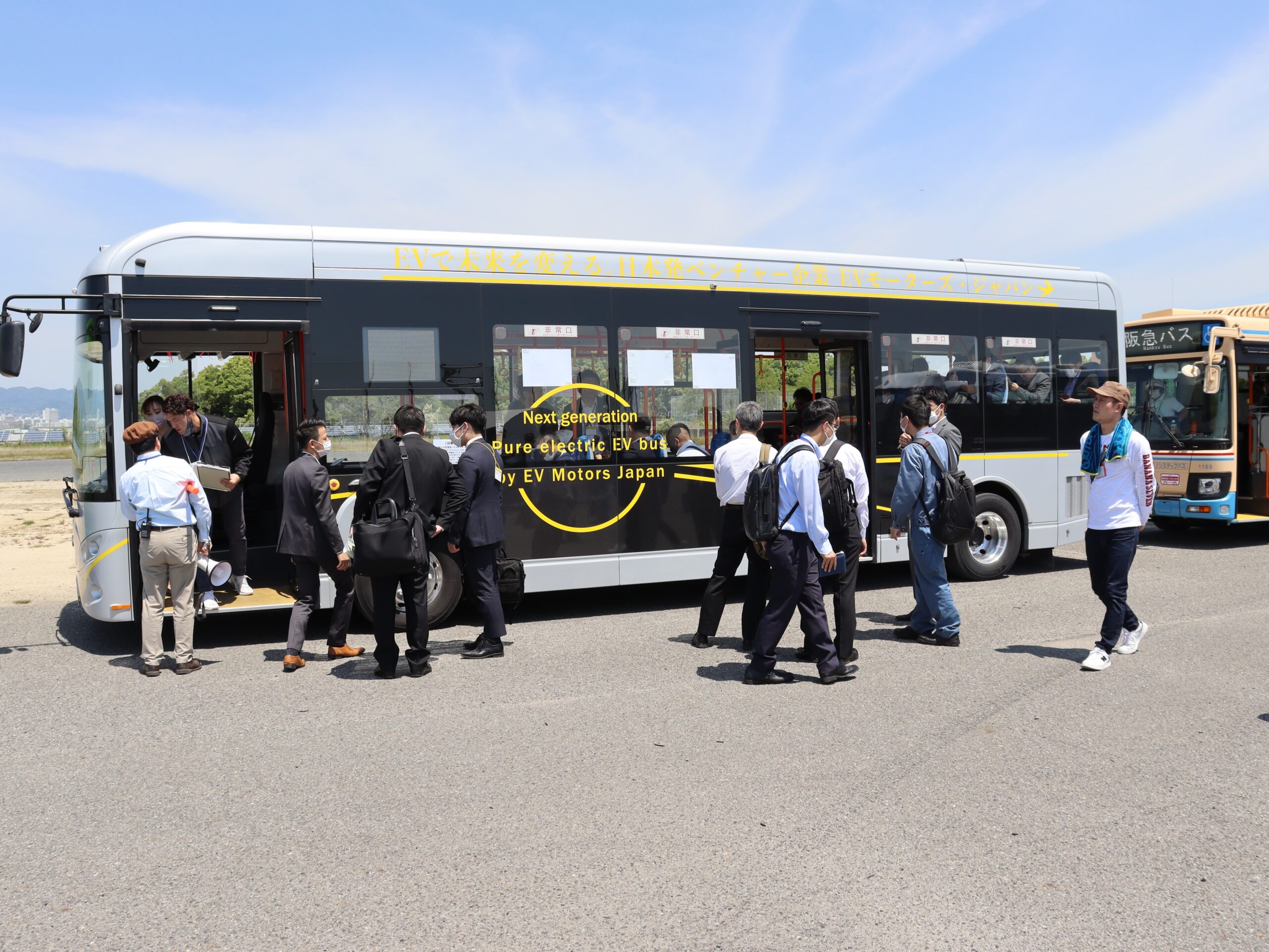 株式会社 EV モーターズ・ジャパン (本社:福岡県北九州市若松区、代表取締役社長:佐藤 裕之) は2023年5月12日(金)に大阪市此花区 舞洲スポーツアイランド 「空の広場」にて開催された「2023 バステクフォーラム」にてEV路線バス(10.5m)、EV観光バス(8.8m)を出展いたしました。EV観光バスは関西エリアで初披露となりました。