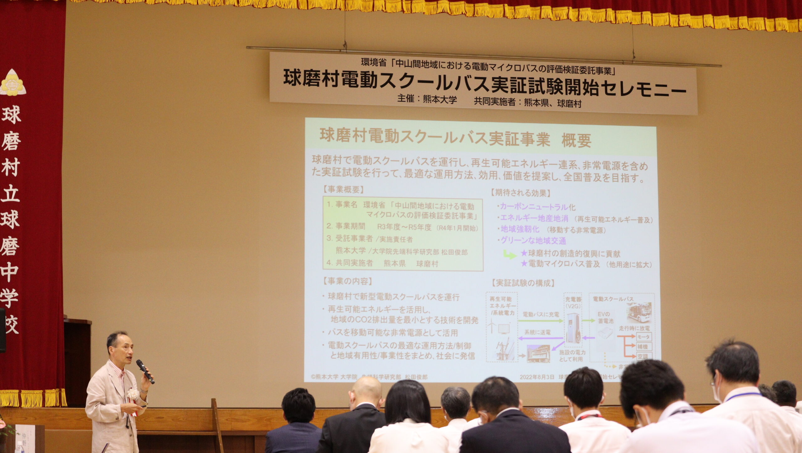 【環境省 中山間地域における電動マイクロバスの評価検証委託事業「球磨村電動スクールバス実証事業」】の開始セレモニーが執り行われました