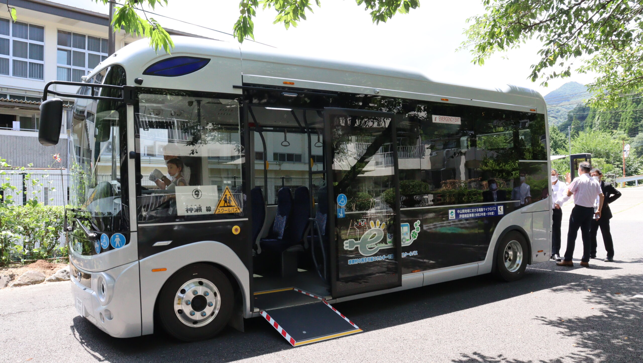本事業は球磨村で電動スクールバスを運行し、再生可能エネルギー連系、非常電源としての活用を含めた実証試験を行って、最適な運用方法、効用、価値を提案し、全国普及を目指す全国初の取り組みです。全国の中山間地域でのカーボンニュートラルはもちろん、その他にも抱えている地域課題を解決するための手段として、弊社の小型コミュニティEVバス「F8 series4-Mini Bus」が採用されました。