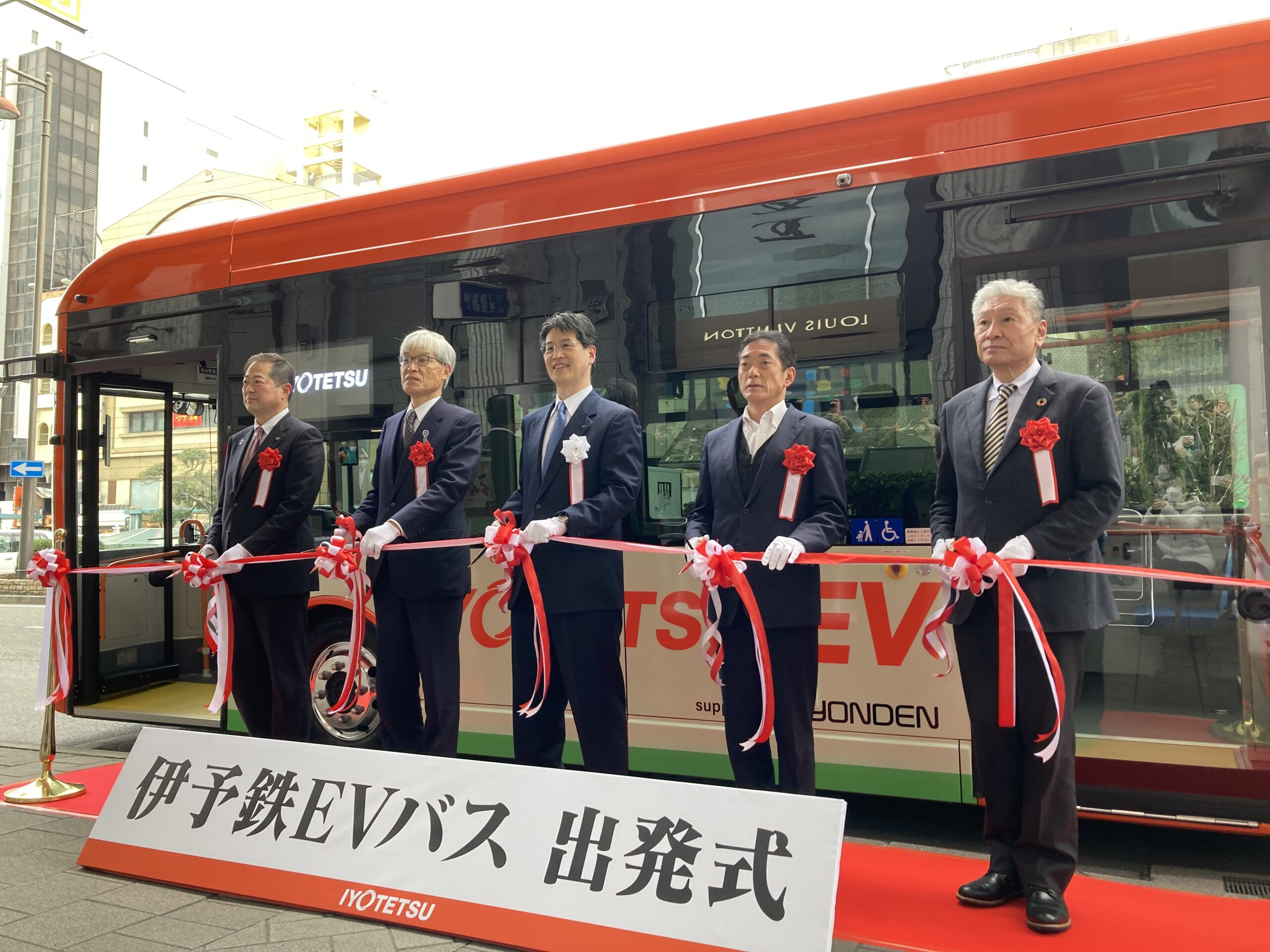 この度、伊予鉄バス株式会社様へ、大型路線EVバスにおいては、国内企業が開発・製造を行うEVバスとして、 全国初となるEVバスを納車させていただき、2023年1月25日に出発式(主催:伊予鉄グループ様)が執り行われました。